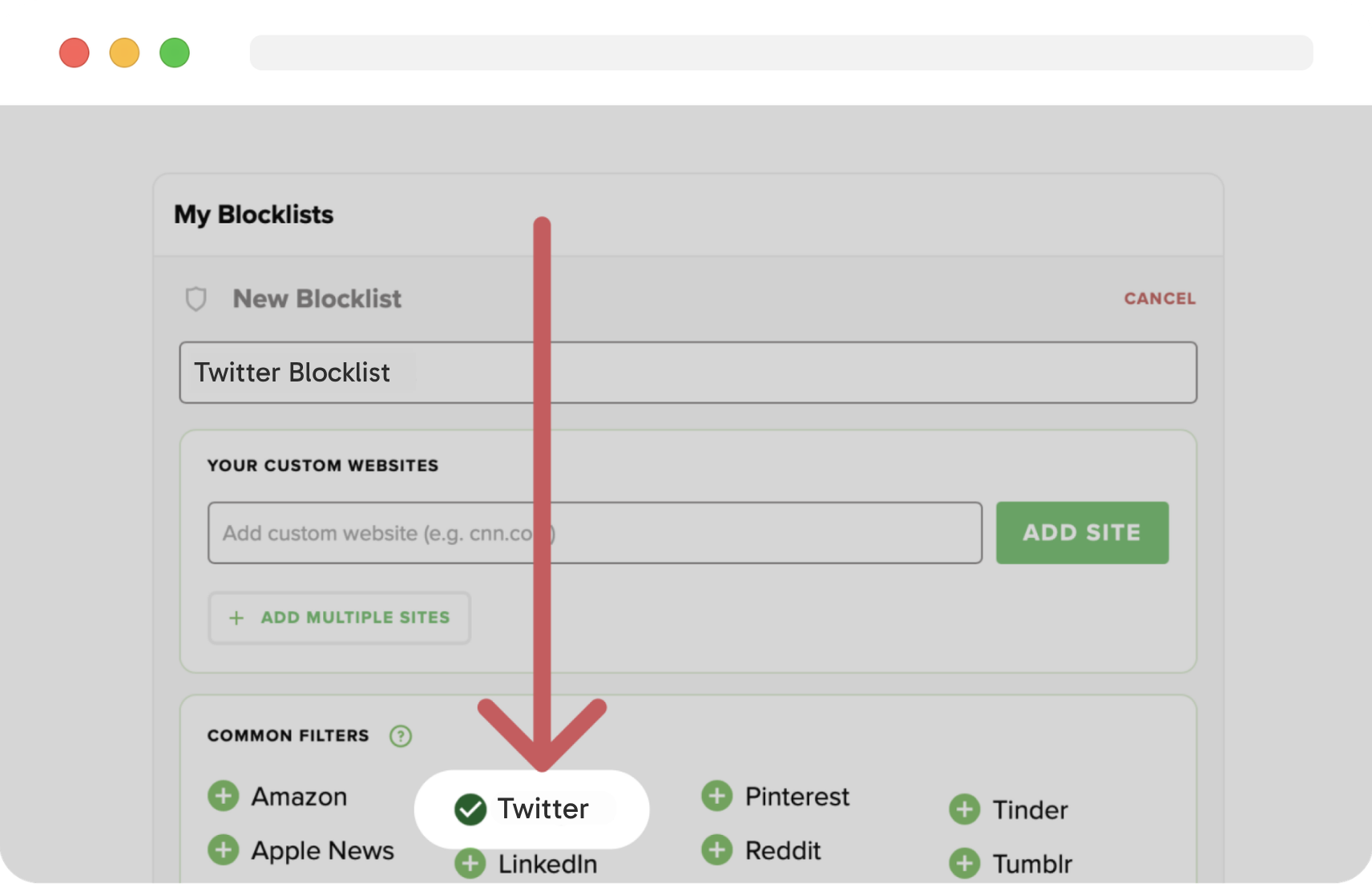 On the Freedom Dashboard, add Twitter to your blocklist.
